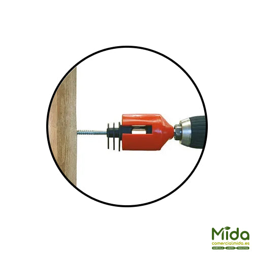 Adaptador de broca que facilita a colocação de isoladores redondos em postes de cerca elétrica.