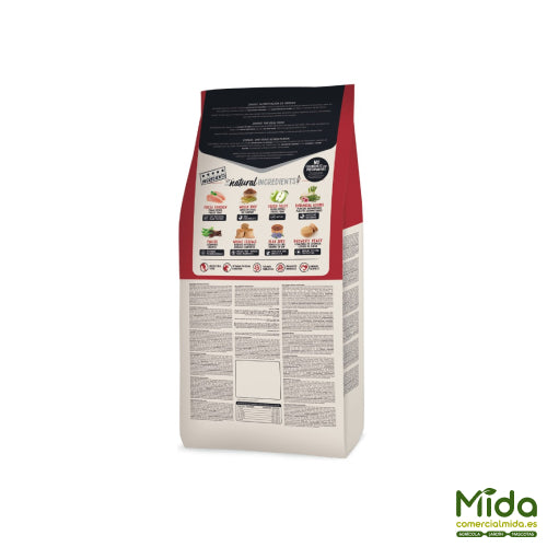 Todo cão precisa de um tipo de ração que se adapte às suas características nutricionais e físicas específicas . A mistura de ingredientes naturais favorece o bom funcionamento do organismo em geral, atendendo a cada uma das necessidades: a carne fresca fornece proteínas de alto valor biológico, os grãos inteiros melhoram o evacuações e as plantas aromáticas promovem bem-estar digestivo , entre outros.