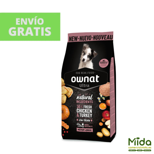 O Eu acho que Ultra Medium Junior Ownat é um tipo de alimento seco que facilita e melhora a digestibilidade dentro cachorros de raça média desde o desmame até o final da estação de crescimento. A fórmula é projetada com base em todos ingredientes naturais , com altas proporções de carnes frescas e um conteúdo limitado de cereais integrais que irá melhorar a assimilação dos componentes e facilitar o processo digestivo. Oferece um alta ingestão de energia e rico em proteínas que melhora o desenvolvimento muscular e ósseo . Os ingredientes são cozido muito devagar em baixa temperatura para alcançar a mais alta qualidade nutricional. Incorpora frutas e vegetais frescos que age como poderoso antioxidante natural, sementes de linho para ele cabelo e cuidados com a pele e plantas aromáticas que melhoram o bem-estar digestivo . O proporção de cálcio e fósforo apresenta um equilíbrio ideal para o bom desenvolvimento dentário e a mandíbula.