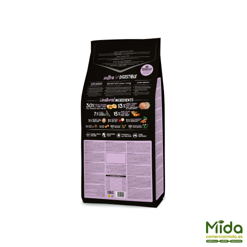 O Acho que Ultra Médio Esterilizado é um tipo de comida completa especial por cães esterilizados de raças médias e com menores necessidades de energia. Esses tipos de cães são mais propensos a sofrer acima do peso , então a receita é formulada com base em Ingredientes 100% naturais cozido lentamente em baixa temperatura e milho, trigo ou soja livre . O arroz, cevada e aveia que inclui é integrante e funciona como a principal fonte de fibras, vitaminas e minerais. O ingrediente principal é carne de frango e peru , que fornece um alta proteína . Facilita a digestão e evitar uma dor de estômago ou intolerâncias alimentares. Este feed incorpora um baixo teor de gordura e mantém uma alta proporção de proteínas que garantem um condição corporal ideal . O Levedura de cerveja proteja o sistema imunitário e frutas e vegetais funcionam como antioxidante natural . As linhaça melhorar e fortalecer o atendimento do cabelo e pele , fornecendo ácidos graxos ômega 3 e 6.