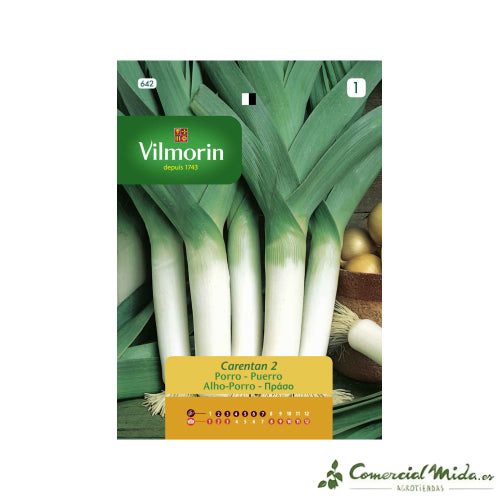Vilmorin Leek Carentan 3 sementes são sementes de crescimento fácil . Está variedade rústica e precoce Apresenta folhagem longa, lanceolada e plana e bolbo branco alongado. O eixo , a parte branca e alongada, é o pedaço utilizável . O sistema radicular é abundante e o pé é curto, mas muito largo. Essas plantas se desenvolvem em qualquer tempo , sendo muito favorável o temperaturas amenas e o clima úmido. As ervas daninhas que podem aparecer no solo devem ser controladas e pequenos montes de solo se formam regularmente em torno da planta para obter longos caules brancos . A forma de cultivo do alho-poró pode ser feita em canteiros ou diretamente no solo.