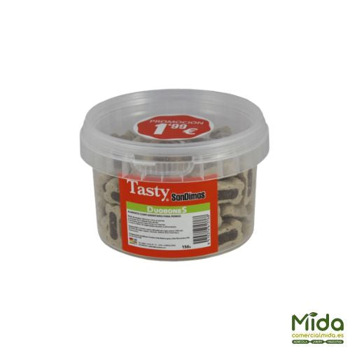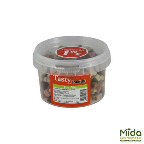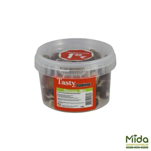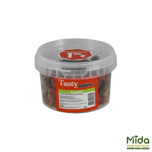 Los mejores snacks SanDimas Tasty 150 gr en botes para perros.