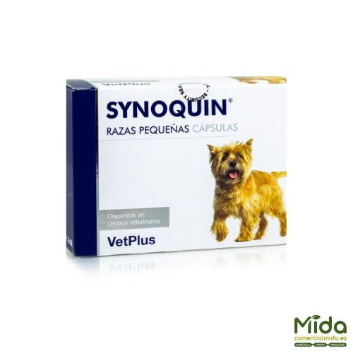 Synoquin para razas pequeñas incorpora en su composición 5 elementos que ayudan a mantener una buena salud y refuerzo en las articulaciones: el condroitín sulfato es el encargado de una correcta hidratación de los cartílagos, manteniendo la elasticidad y flexibilidad, evitando el deterioro acelerado de las articulaciones; la glucosamina HCI estimula la síntesis de los glicosaminoglicanos (GAG) del cartílago, especialmente en los animales mayores y evita el adelgazamiento del cartílago, mejorando movilidad articular. El N-acetil-D-glucosamina consigue una mayor producción de GAG, mejorando la reparación del cartílago y, en conjunto con el ácido ascórbico (Vitamina C), previene el daño adicional causado por los radicales libres dentro de la articulación. El sulfato de zinc esencial en los procesos enzimáticos de todo el cuerpo y es especialmente importante en la formación del cartílago y el hueso.