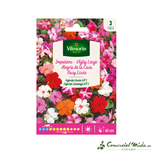 Las semillas de Alegría de la Casa Híbrida Variada HF1 de Vilmorin son perfectas para quienes desean una floración duradera y espectacular con el mínimo esfuerzo. Esta variedad híbrida aporta un color vibrante a jardines con sombra parcial, balcones o terrazas, adaptándose fácilmente tanto al cultivo en macetas como en suelo directo.